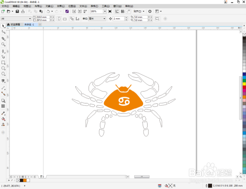 最后,选中所有足部图案,鼠标左键点击右边色板中的橘色,将图案填充为橘色。完当作后,选中所有图案,鼠标右键点击色板中的×,去除图案所有描边,这样我们的巨蟹座图标便全数建造完当作。