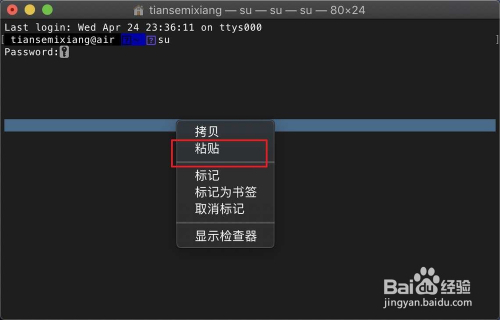 然后选择密码,右键拷贝,然后打开终端,右键粘贴密码即可。适合不会输入密码的小白。