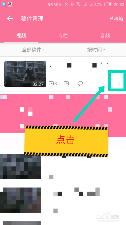 在打开的稿件办理界面,点击要删除的视频的后面的三个点。