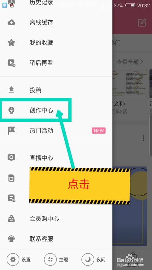 在打开的左鸿沟面,需要滑动界面,找到创作中间。