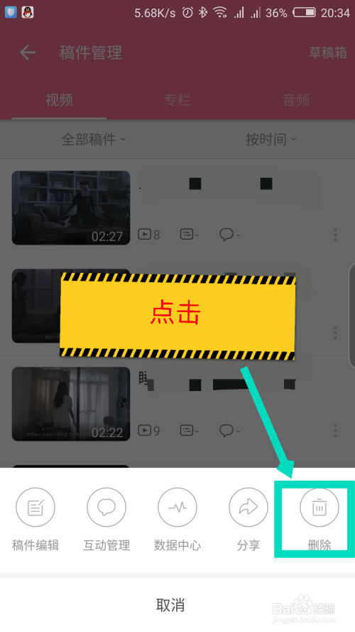 在底部弹出的选项中,点击右边的删除,就可以删除视频了。