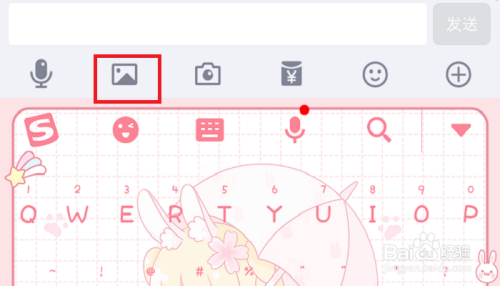 然后,我们鄙人面的输入框中的那一列菜单功能中,找到【发送图片】功能的图标(小编用红色方块标注了)而且点击它。