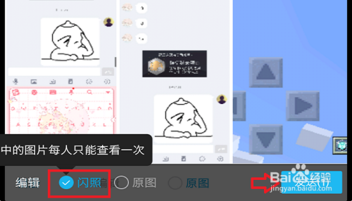 点击图片之后,我们就会把这张图片方式,然后,我们可以在图片的左下角看到多了一个选项,就是【闪照】,勾选上它,点击【发送】。