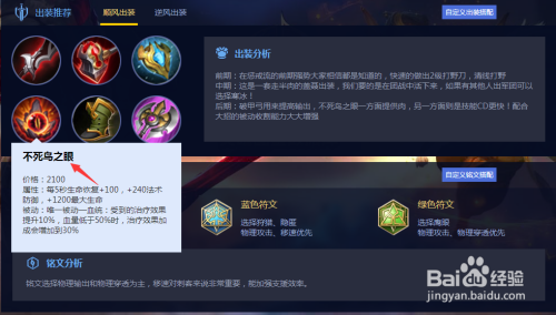 我们接下来可以给盖聂出一件不死鸟之眼来使盖聂获得血统的被动结果从而使盖聂存活能力更强。