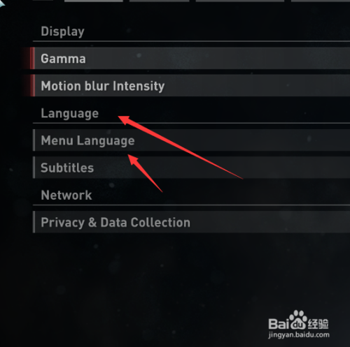 继续选择“language"中的“menu language ”。