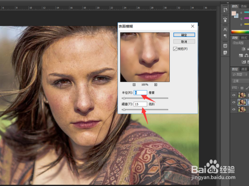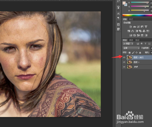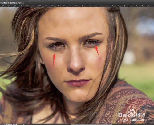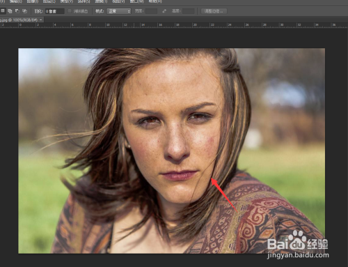 首先我们打开PS软件,在进球之前小编已经找到了一个蔬菜,这小我物图片的面部有良多斑,并且毛孔比力粗大,接下来我们就来对它进行精修。
