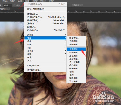 拷贝完布景图层之后,我们首先对第1个图层进行操作,点击上方的滤镜,恍惚,选择恍惚为概况恍惚。