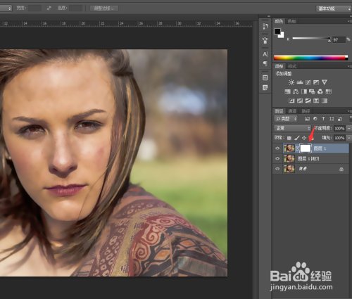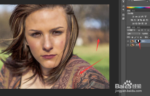 然后我们在第1张图片之上插入一个图层蒙版,然后设置黑色画笔,将脸部之外的布景给还原出来。