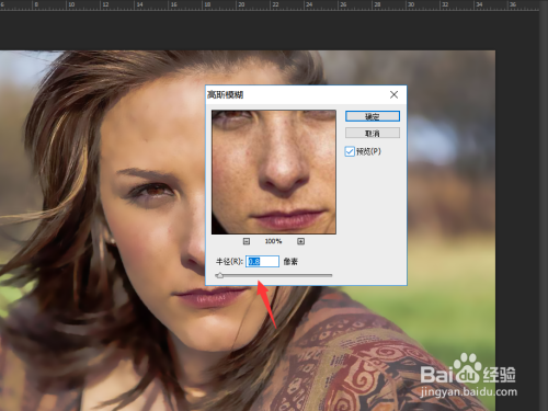 接着我们设置高斯恍惚的半径为6像素,在右上角可以看到恍惚后的预览图。