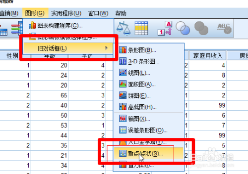 接着选择【图形-对话框-散点点状】,进入散点图设置对话框