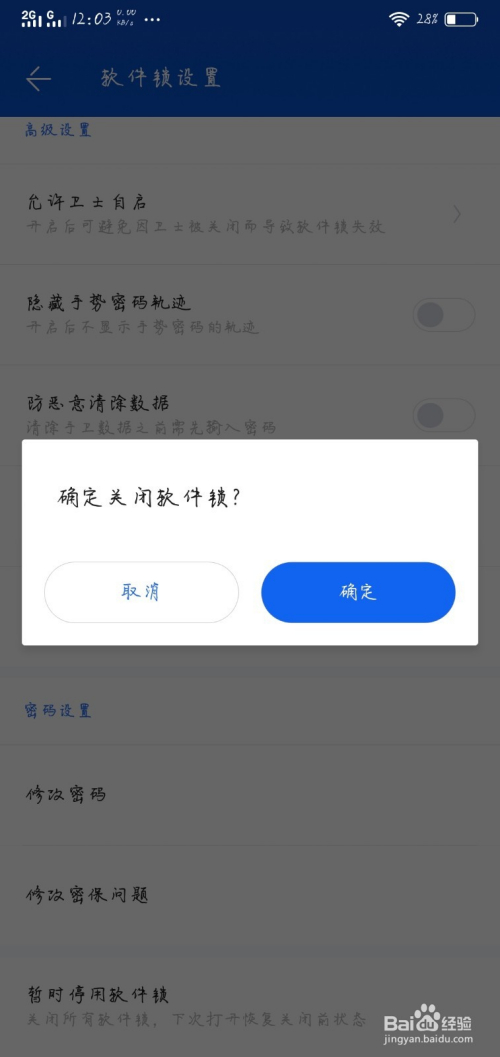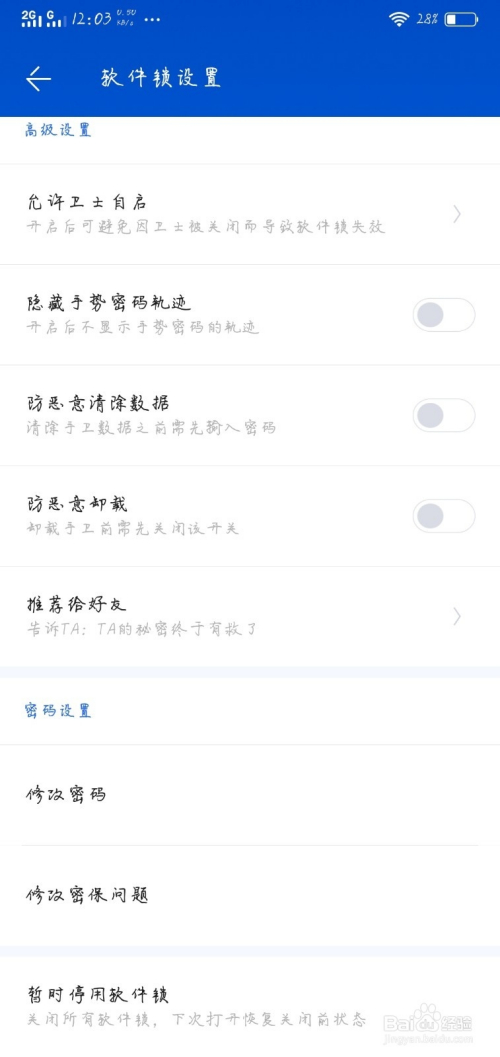 软件锁设置的页面,点击临时停用软件锁这一项。