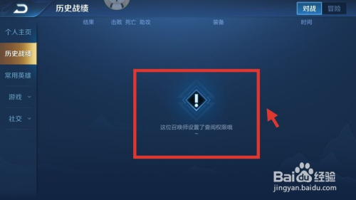 第五步,设置之后,若是别人查看你的战绩会【显示没有权限】,具体如下图