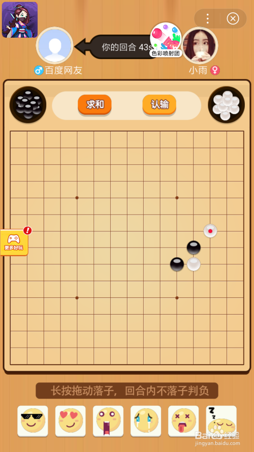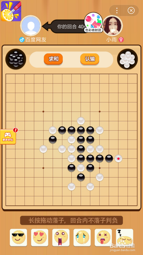 一般第一步起头,先点屏幕的某个格子,你的黑棋子就会落到此处,然后敌手下白子棋。注重你点屏幕时,棋子会实时落下,然后你要一向按着拖到你想放的位置,在落到抱负位置时不要松开。