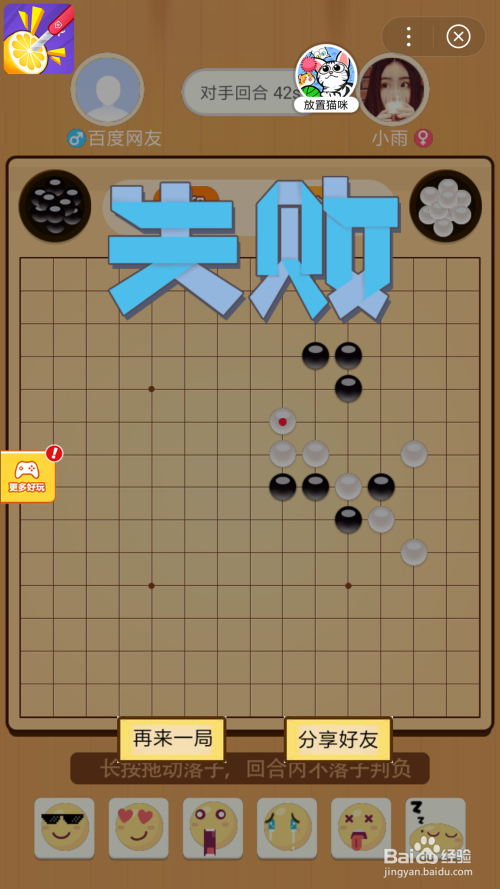 显然,这一局敌手的实力比力强,本身操作的不太谙练,让对方浑水摸鱼,造当作了掉败的残局。不外可以选择再来一局。