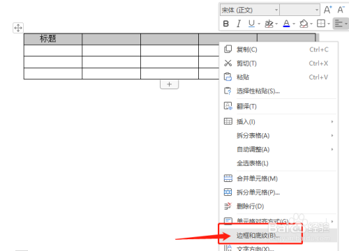 右击,选中边框和底纹: