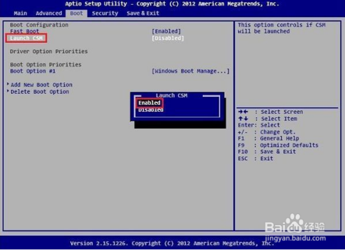 在Boot里面找到launch CSM ,设置为enabled,按F10保留,重启;