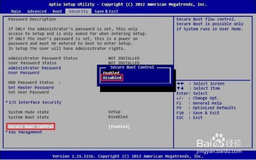 在security里面找到secure boot control,设置为disabled,按F10保留,重启;