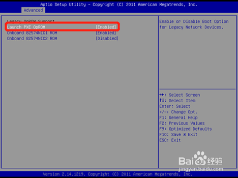 在Advanced里找到launch pxe oprom,设置为enabled,按F10保留,重启;