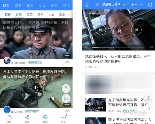 也可以在“看吧”里选择各类视频可以不雅看,如影视可以影视片段等
