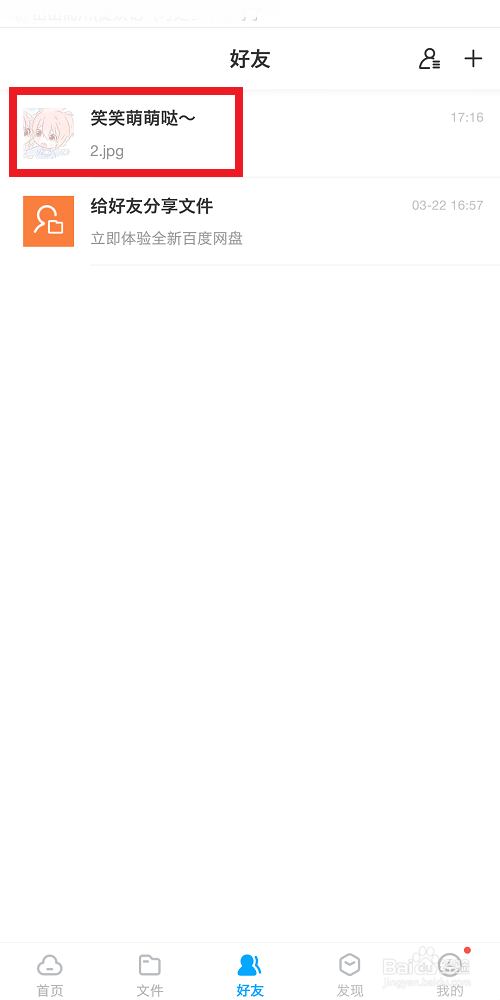 进入到老友列表的界面中之后,我们需要点击我们想要查看分享文件的那个老友。