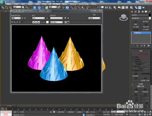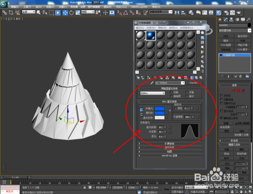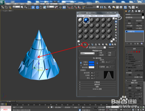 点击【材质编纂器】,弹出材质编纂器设置栏,按图示设置一个蓝色材质球并附加给模子。最后,点击【衬着】将我们经由过程可编纂网格面挤出建造出来的模子衬着出图即可。