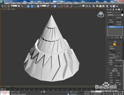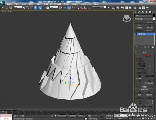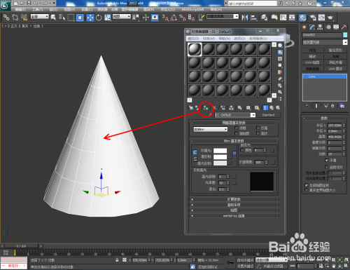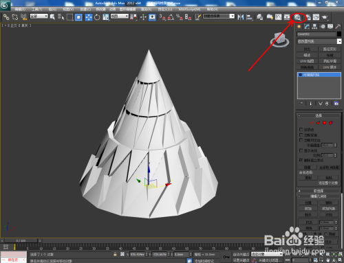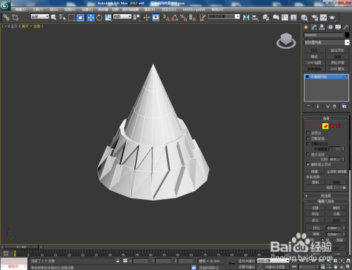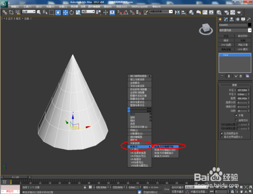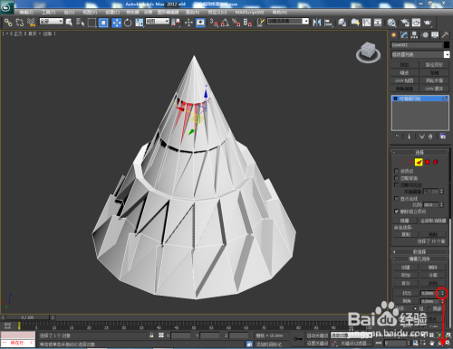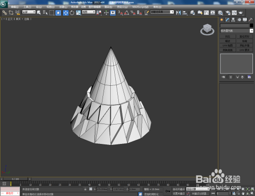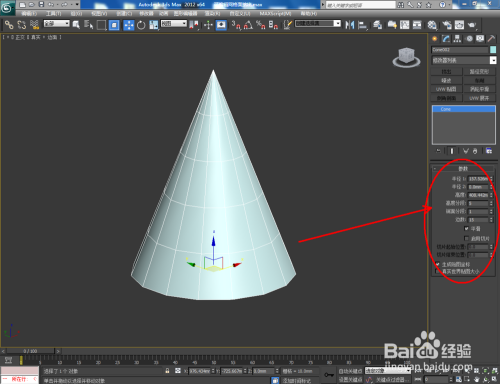 打开3Dmax2012软件,点击【建立】-【几何体】-【尺度根基体】-【圆锥体】,在作图区域绘制一个圆锥体模子并按图示设置好圆锥体的各个参数;