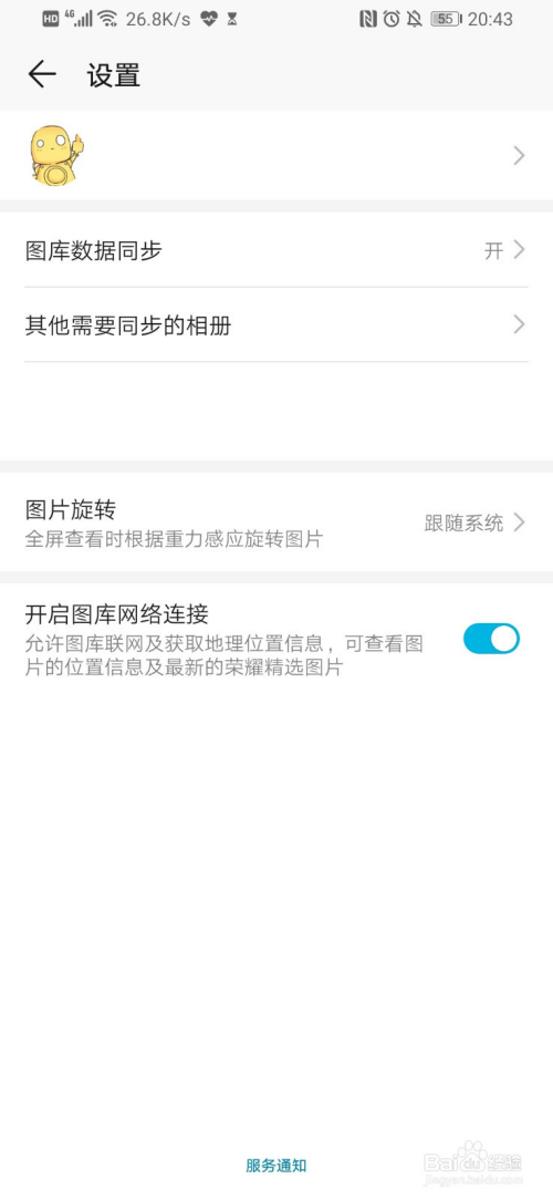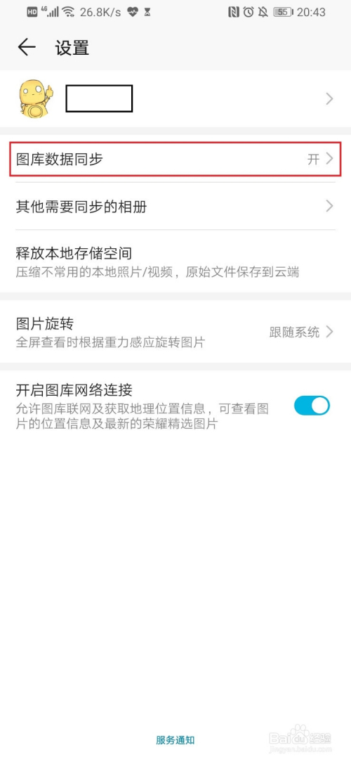 依次点击右上角的小点——设置——图库数据同步,并将其设置为打开状况。