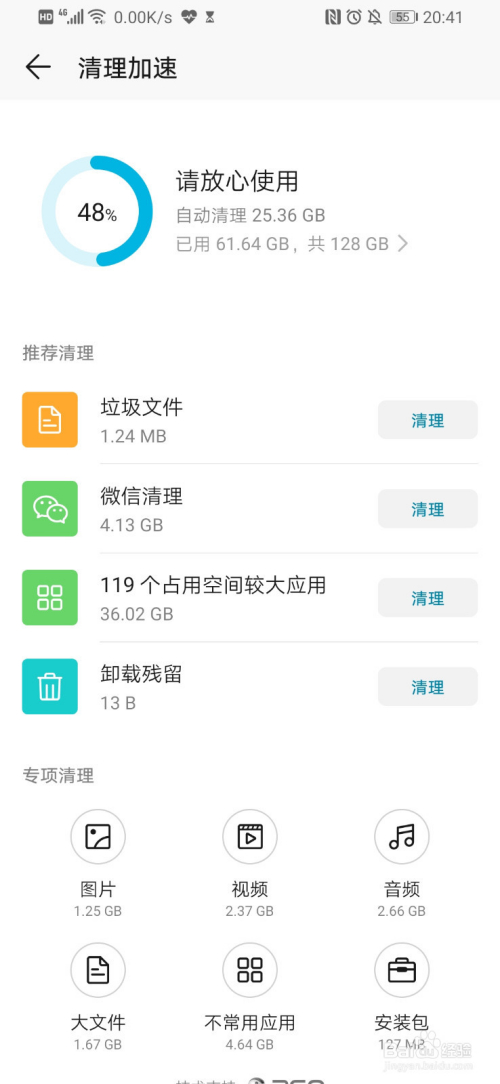 一键释放存储空间
