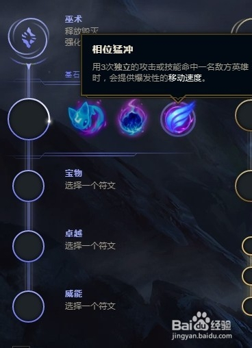 在三个基石里,选择“相位猛冲”。打出符文加快结果,跟进走A,打出Q技术击飞结果,进一步打出更多危险。