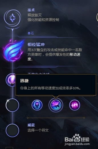在三个卓越里,选择“迅捷”。对所有移速结果供给加当作,提高赵信跑图能力。