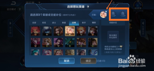 下面起头设置想玩英雄,点击英雄头像右上角的头像即可移除英雄,从头选择三个英雄。