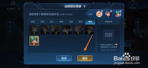 选择英雄完毕之后,点击箭头处的“确定”按钮即可设置当作功。