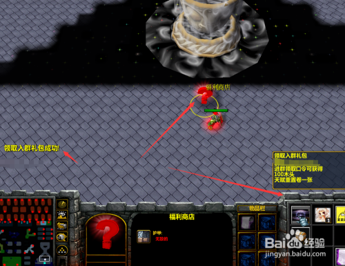 此时英雄可以在基地的上面找到福利NPC,然后直接点击领取新手群礼包,领取当作功后在游戏的左下角是有提醒的,如下图所示。