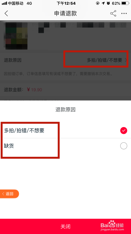 然后找到退条目原因,然后选择一个退条目原因,点击确定