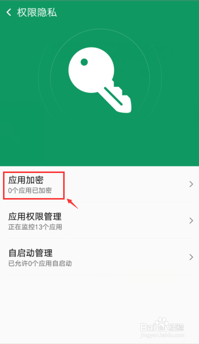 进入权限隐私页面,点击【应用加密】。
