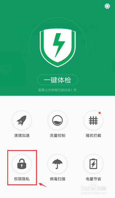 进入平安中间页面,点击【权限隐私】。