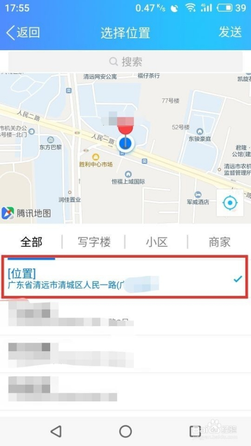 第五步,进入位置界面今后,我们可以选择点击一个【真实位置】,就发送出去了,具体如下图
