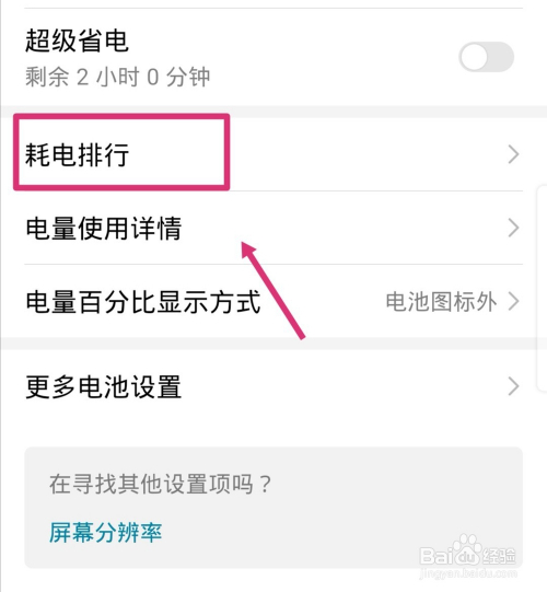 进入电池的设置界面,我们选择页面中的耗电排行的选项。