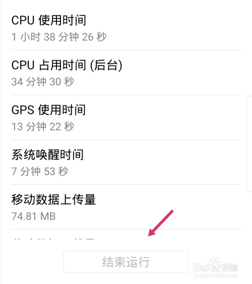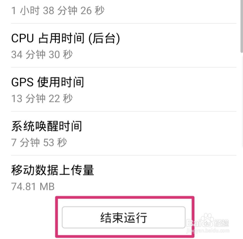 点击竣事运行后,竣事运行会变为灰色,这时申明耗电应用已经被封闭。