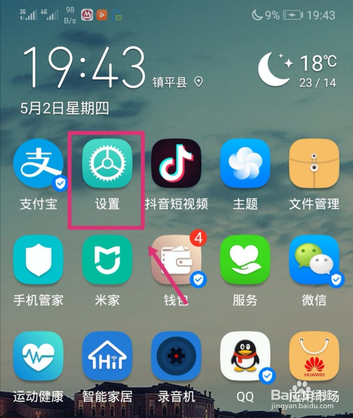 解锁华为手机进入手机系统后,点击设置的图标进入。