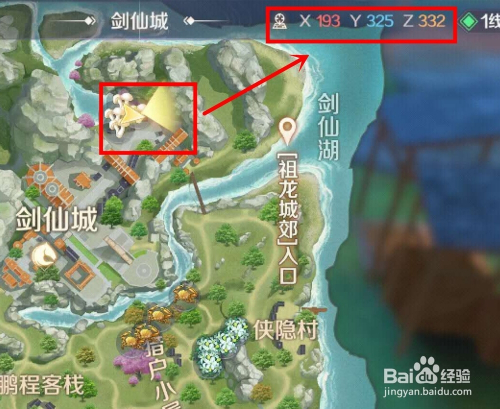 首先,需要到剑仙城找到NPC老王,坐标鄙人图标识位置。