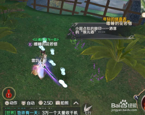 接着需要手工进行案发现场调查,就在旁边,有一个光圈,一串发光的脚印。