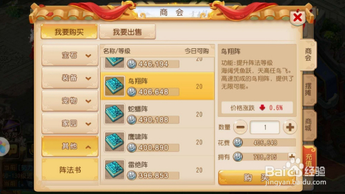 这时会提醒进修阵法要耗损同名的阵法书,点击“采办”,打开阵法书采办窗口。