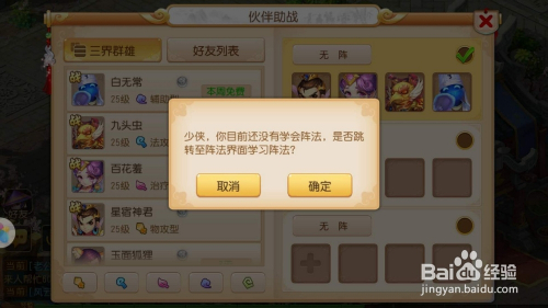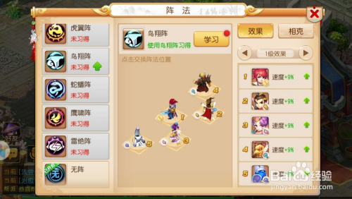采办并进修阵法书后,再次返回到“助阵”窗口,步队就已经利用上刚进修的阵法了。