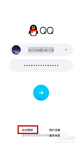 打开手机QQ,在登岸界面中点击底部的【健忘密码】。