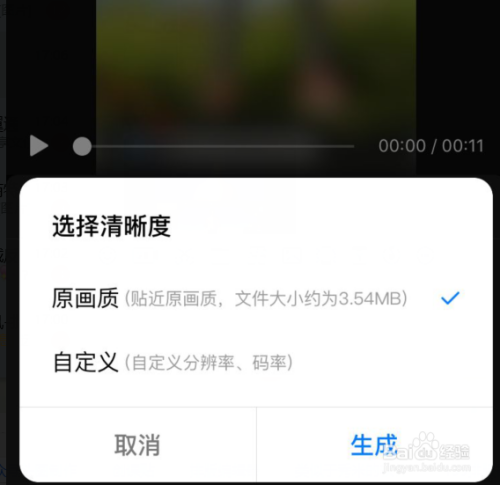 点击后,鄙人方的清楚度中,选择自界说或者原画质的选项。