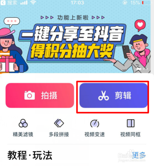 打开手机进入后,选择快剪辑应用进入,点击本家儿界面的剪辑的选项。