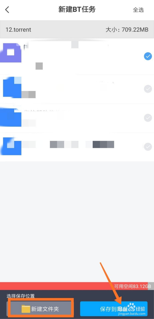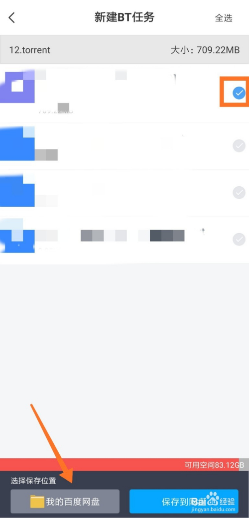解析完毕后,可以看到种子里面的视频文件,勾选视频文件后,起头选择文件保留位置。