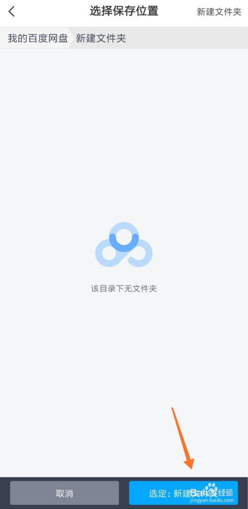 接着点击右下方箭头处的“选定:新建文件夹”按钮,选定保留位置为新建文件夹。