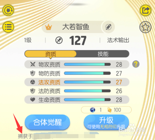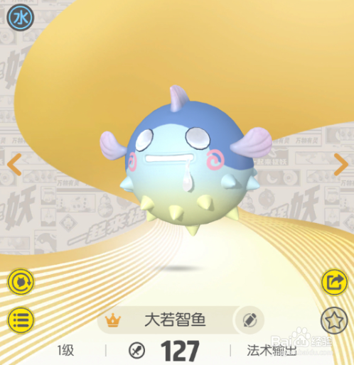 大若智鱼是水属性的妖灵,然后定位在我们的神通输出的位置。